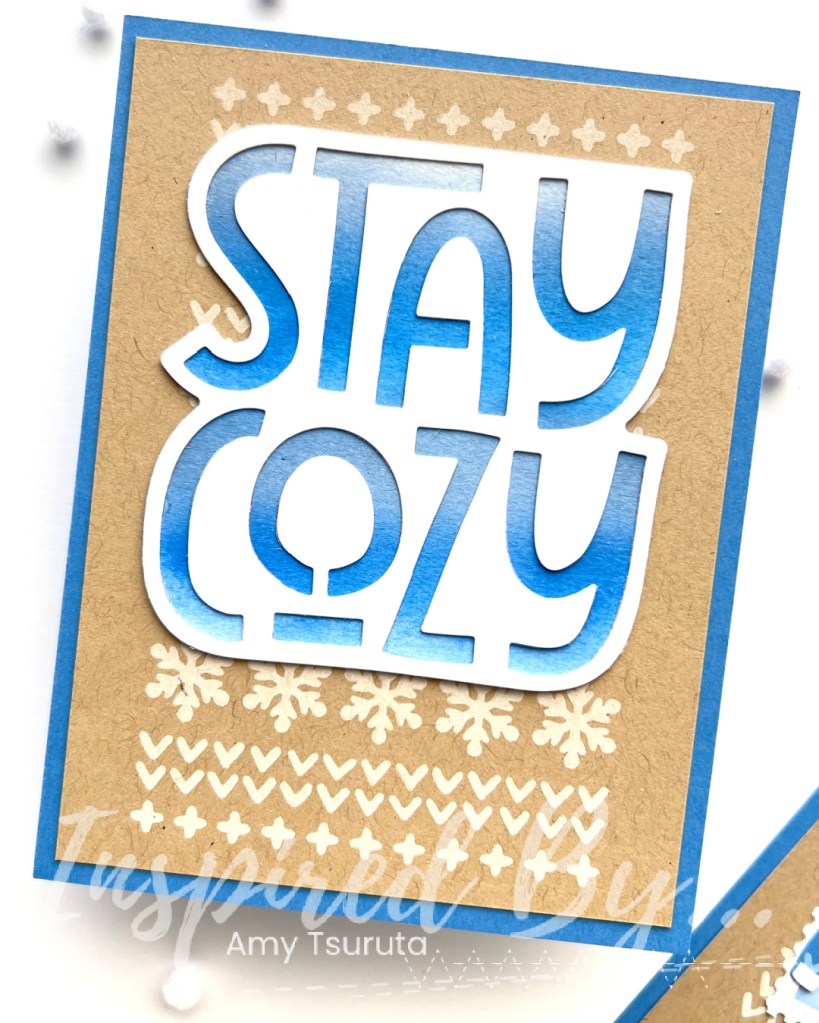 For the Stay Cozy Card, I ink blended the following Distress Oxides and popped it behind the sentiment: