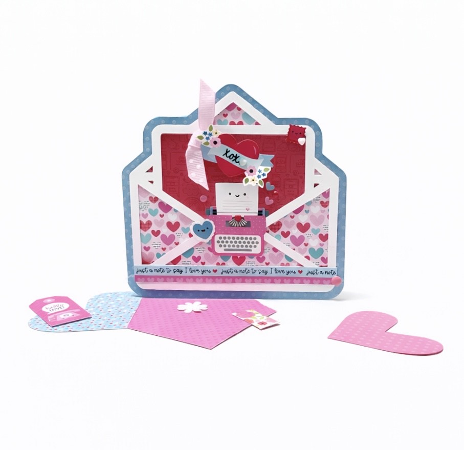 Sharing my take on this week’s challenge. Yep, I loved to make shaped cards…so this was just instant inspiration with a love letter. I found a cute little svg file that was perfect for the challenge and used some adorable Doodlebug papers and embellishment. A sweet little note for someone special!