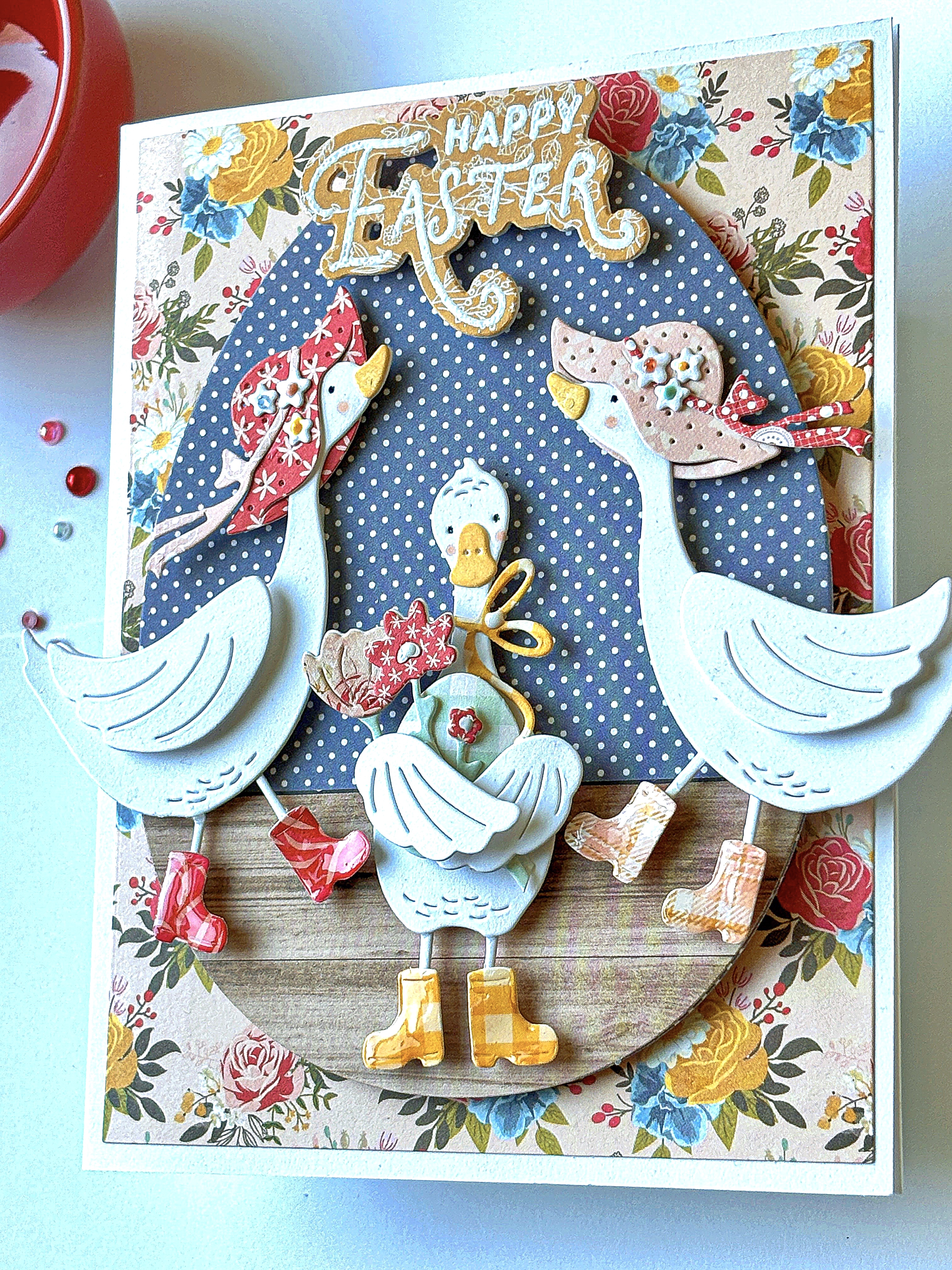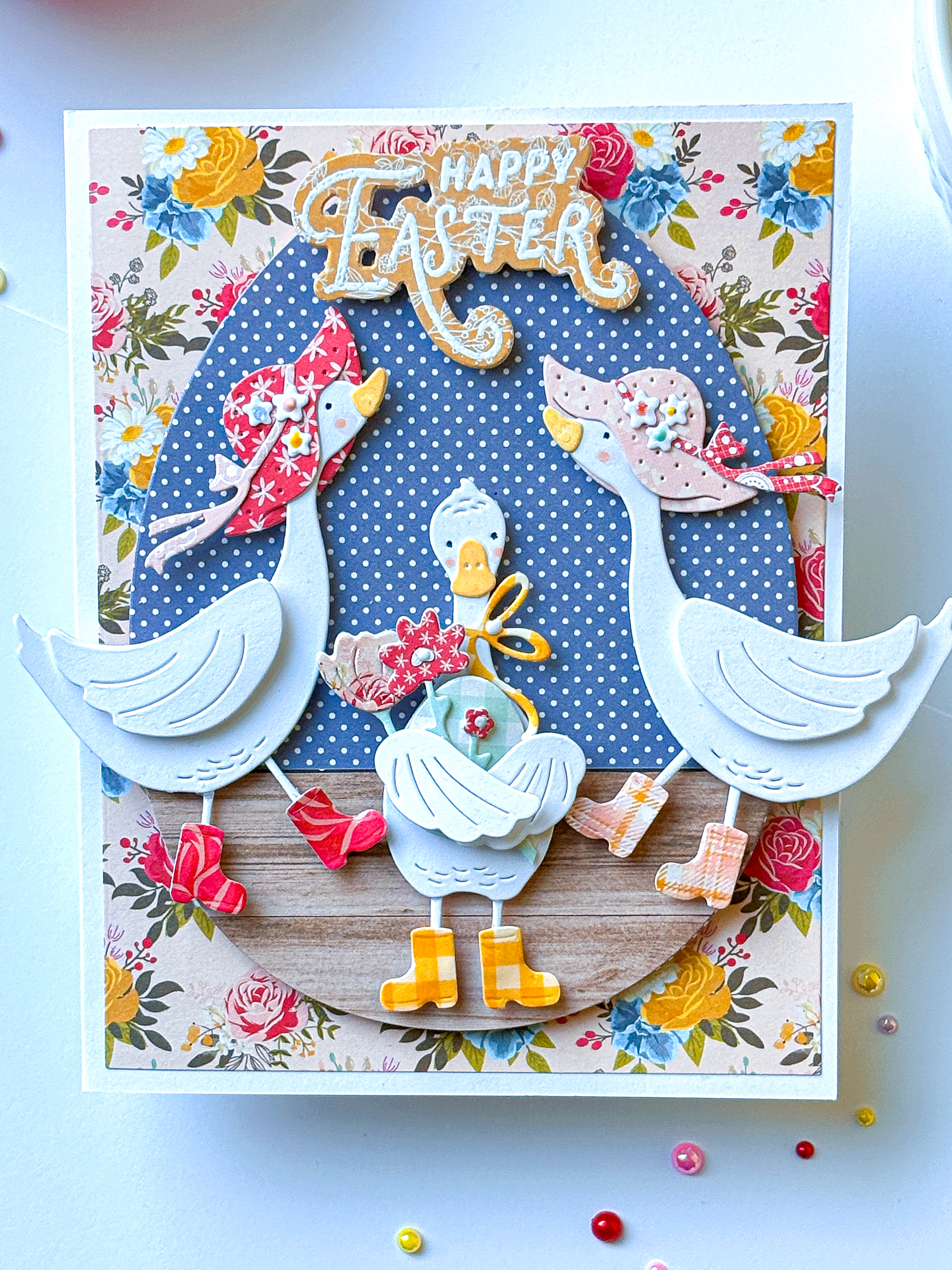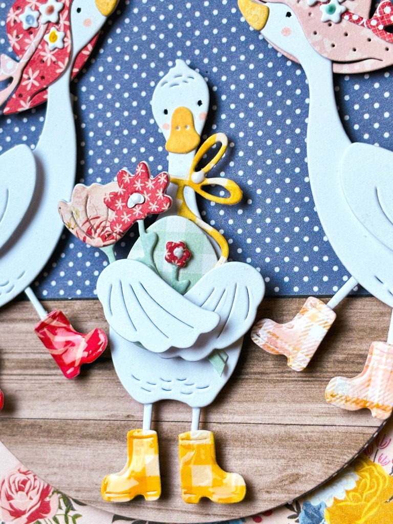 Even though our theme this week was all about spring’s rainy days, you can’t look at those rows of rainbow “Gum Boots” and not smile! I immediately thought of the sweet geese in The Greetery’s “Silly Goose” die collection and got to work making a sweet little scene…