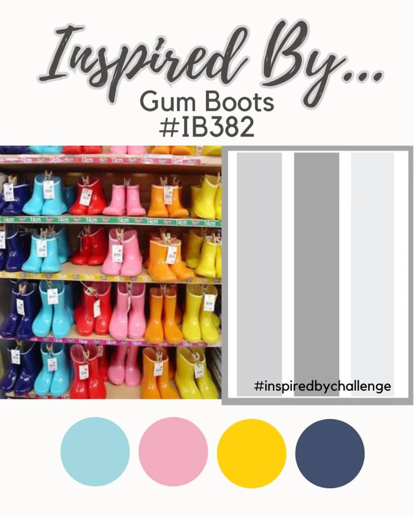 Here is how I was inspired? I want rain boots in every color shown so those boots, colors, and card sketch inspired me.
