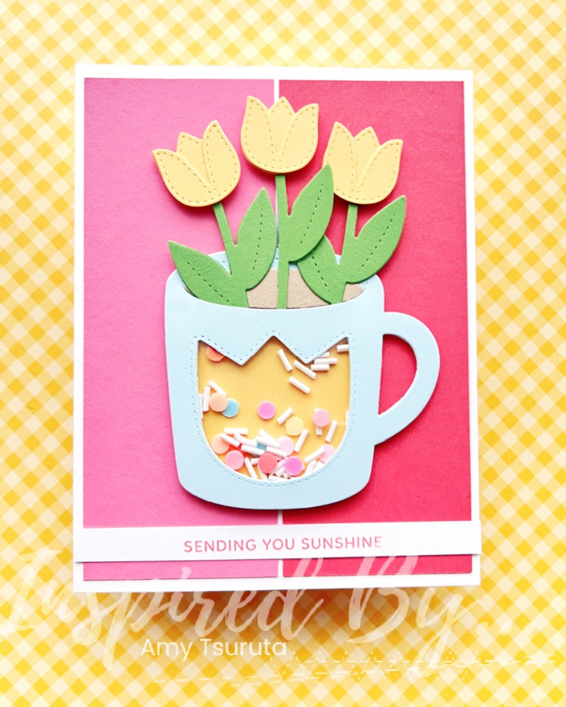 I was inspired by the bright colors and the tulips. I always enjoy creating shaped cards and this was the perfect svg to use for the challenge. Sometimes the simplest can bring the brightest smiles and this colorful arrangement definitely feels like a bouquet of happy days.